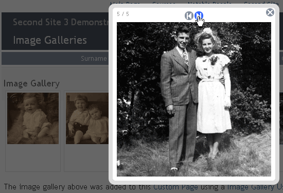 The Image Gallery includes a Lightbox feature where clicking an image opens the full-size version of the image on the current page. The lightbox feature has also been added to the Exhibit Gallery and Picture User Items.